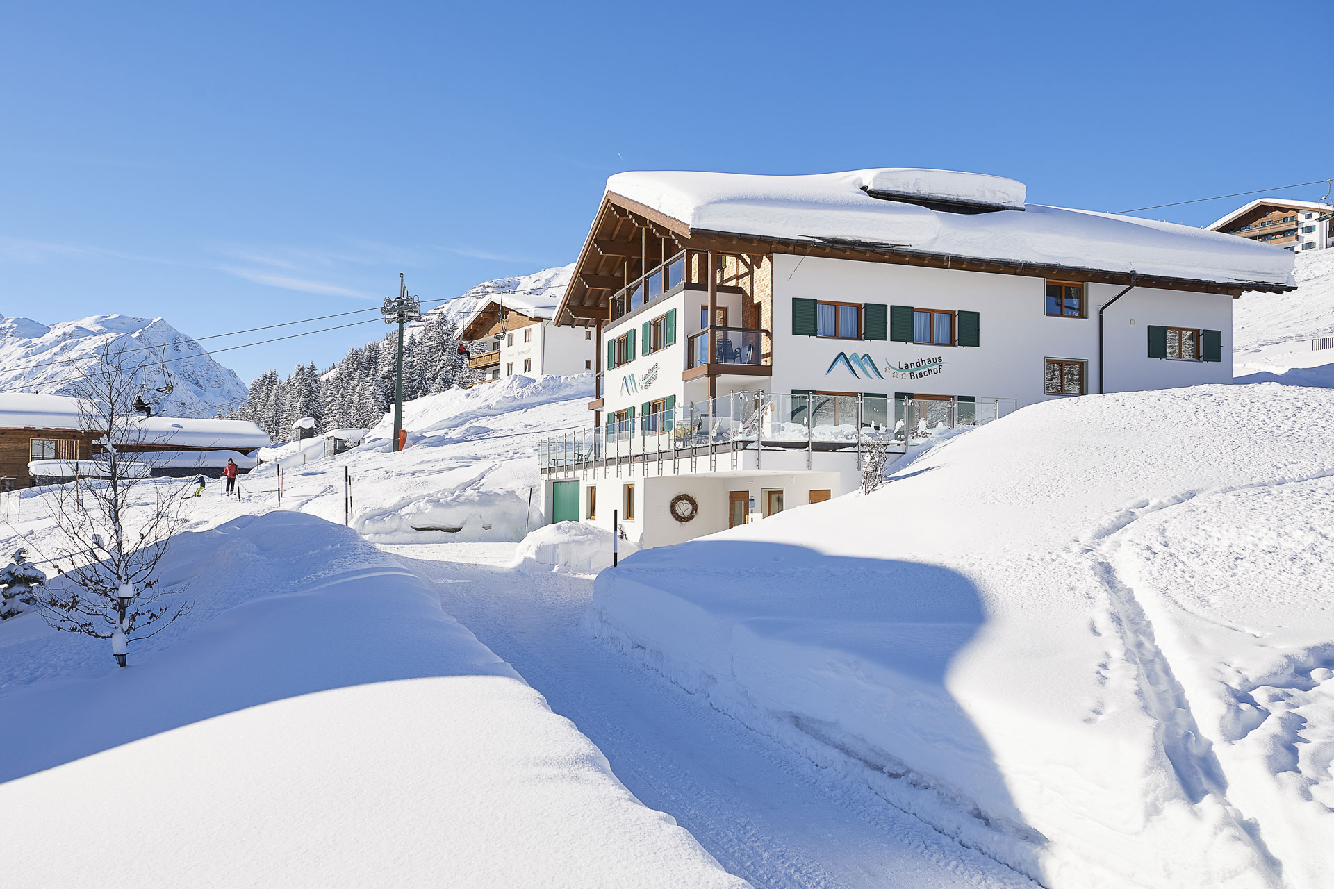Die meisten Navigationssysteme wissen, wo sich das Landhaus Bischof befindet. Falls nicht, können Sie auch direkt unsere Adresse eingeben: Oberlech 529, 6764 Lech.